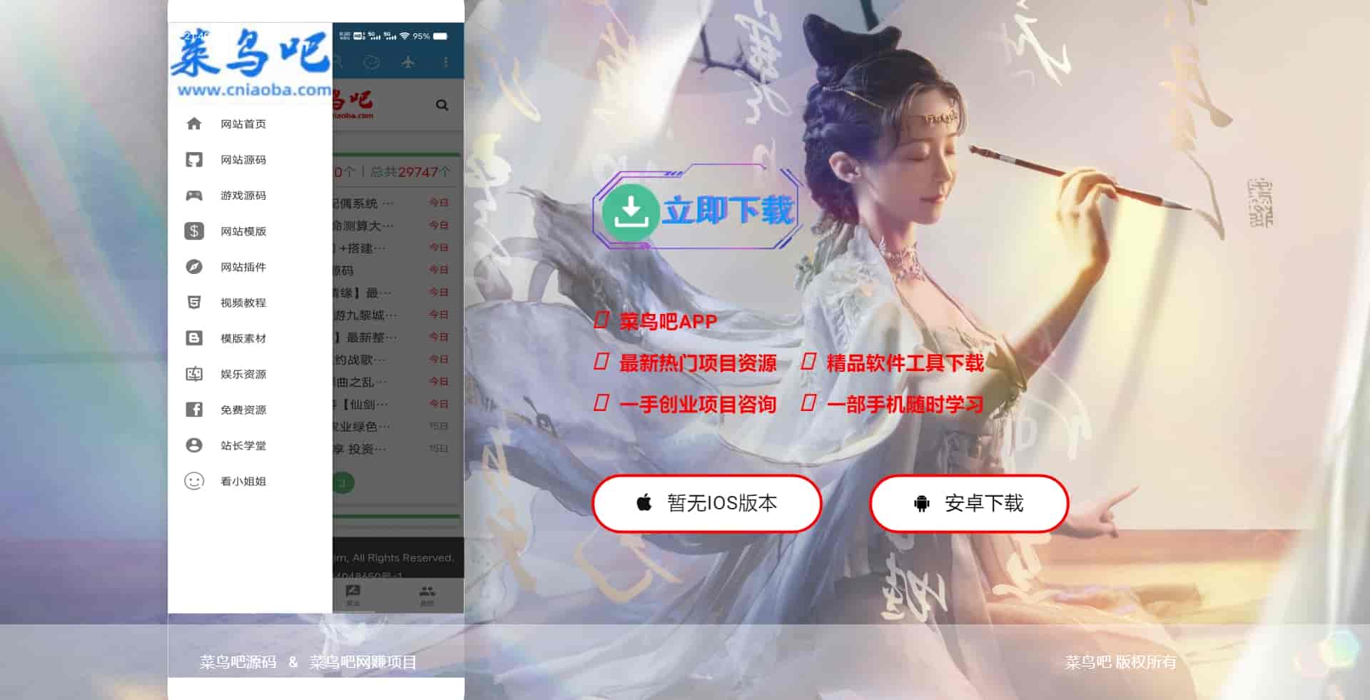 [免费源码] 菜鸟吧自用APP下载引导面页源码 html单页APP下载源码