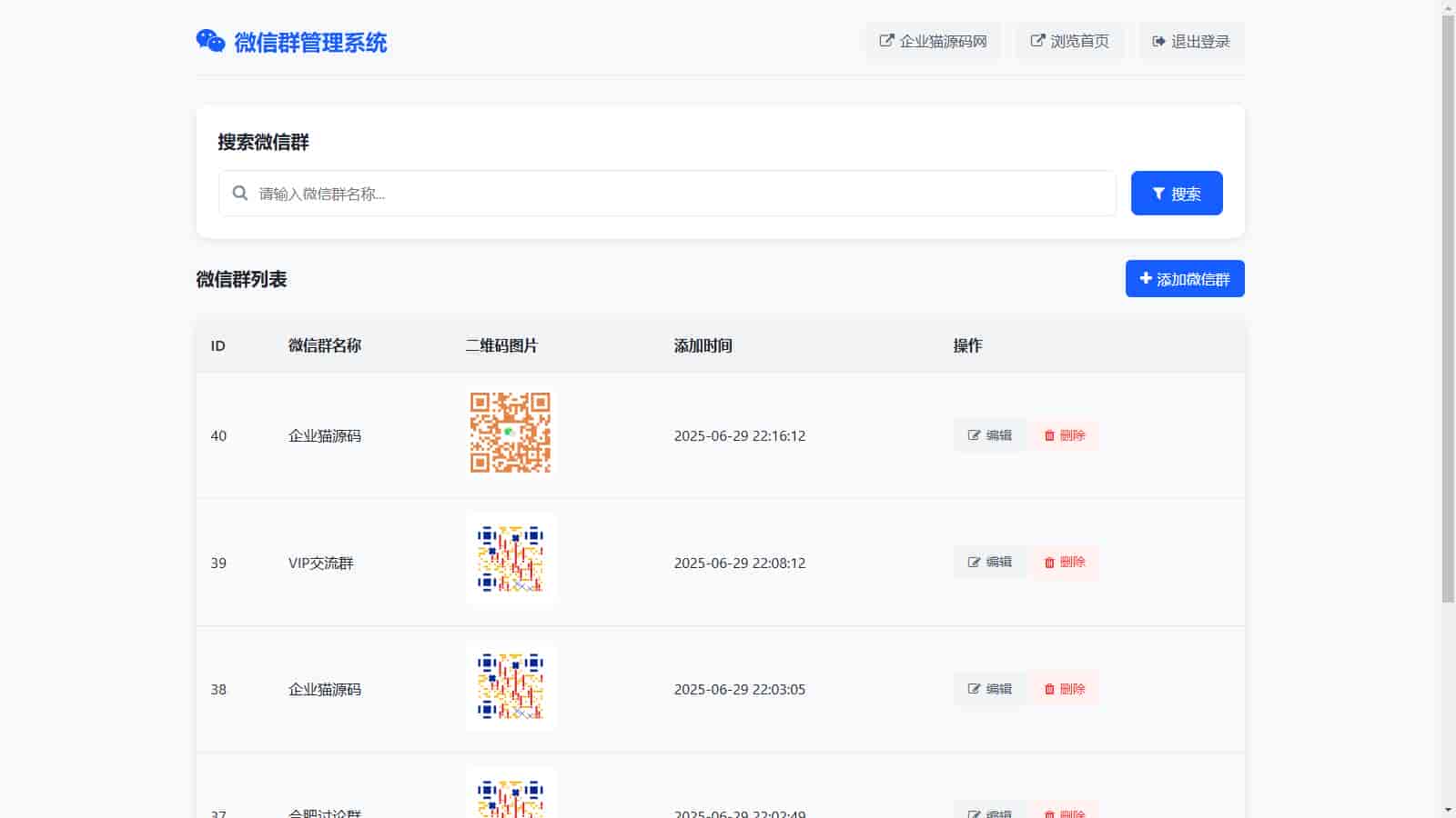 2.管理员后台可以操作编辑所有用户上传的微信群和二维码。