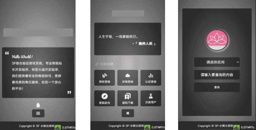 SF多应用综合验证系统是一款基于 thinkphp V6.0.9 和 EasyWeb iframe开发的系统