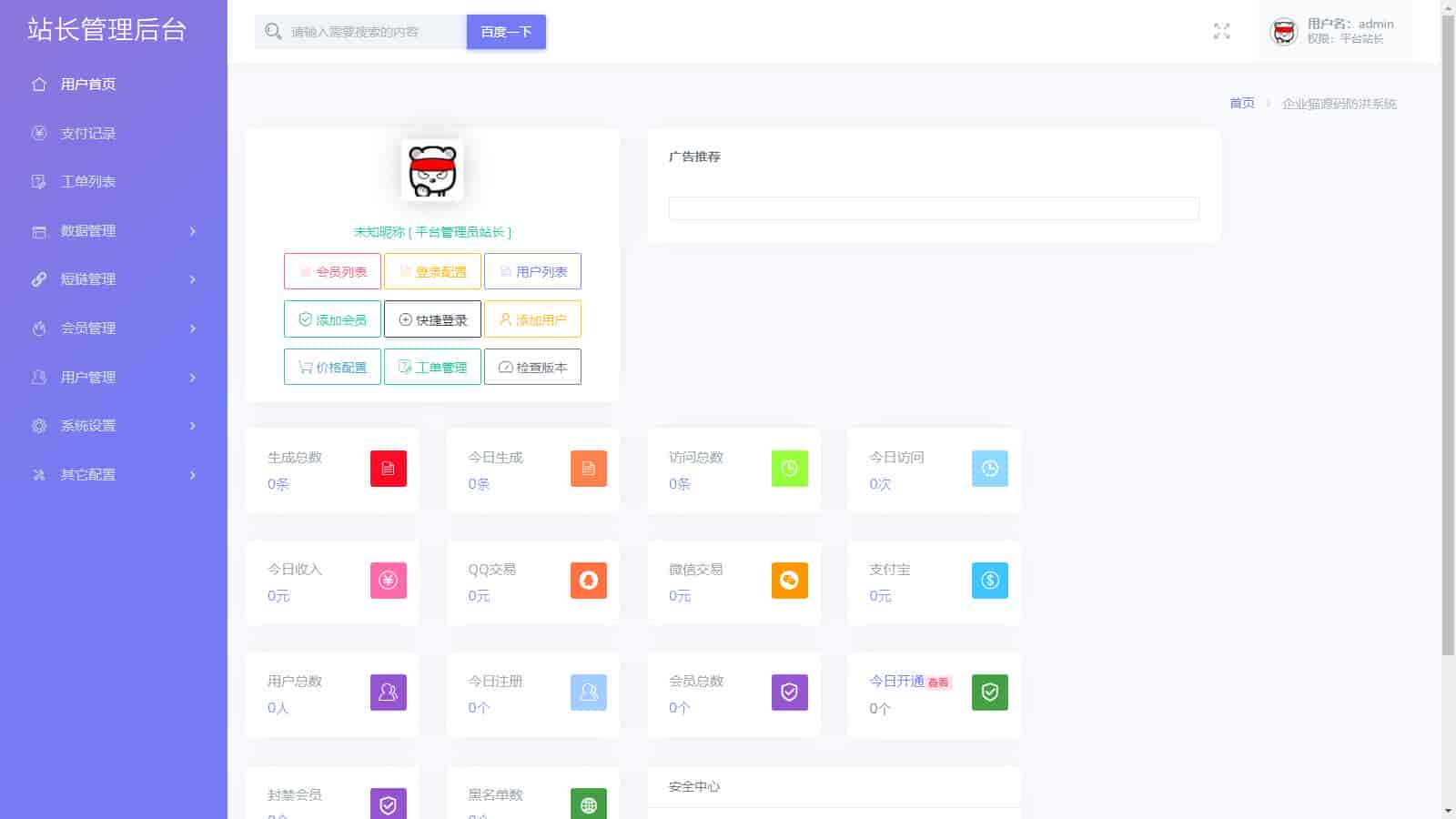 系统带访问记录列表,可查看访问者ip和访问方式,带会员和支付功能