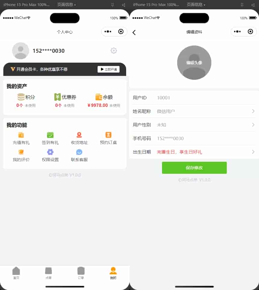 9.会员卡:付费开会员,积分等级,等级折扣,升级赠送,卡面定制等。