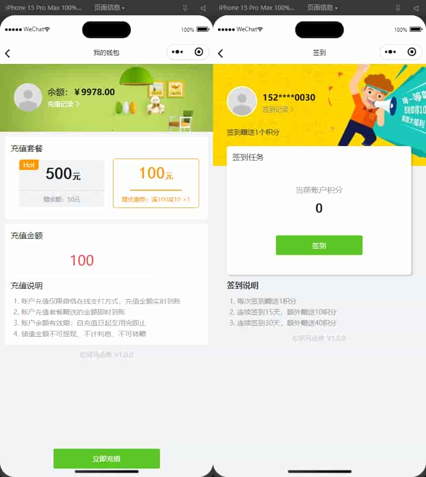 10.积分签到:签到赠送积分或余额,添加签到任务等。