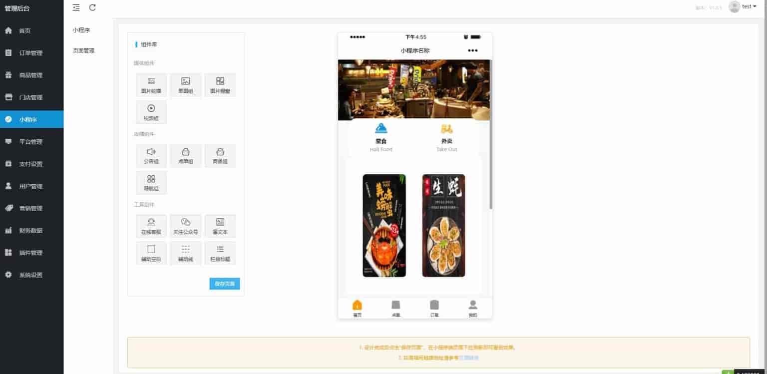 2.小程序页面支持后台DIY,后台修改后即可同步到发布的小程序页面。