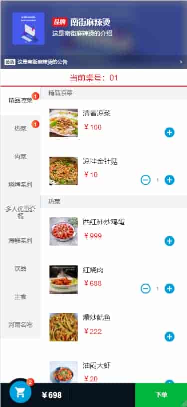 多人在线同时点餐:当多人同时点餐时可以实时同步共享以点菜单,共享购物车。