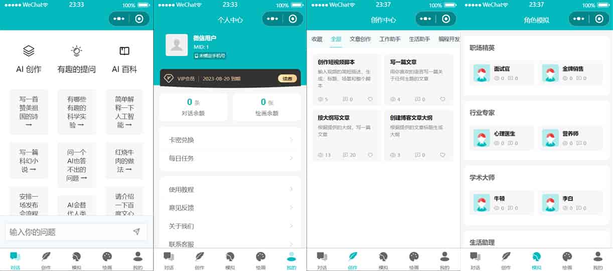 ChatGPT 付费创作系统 V2.1.0 提供最新的对应版本小程序端,上一版本增加了 PC 端绘画功能,