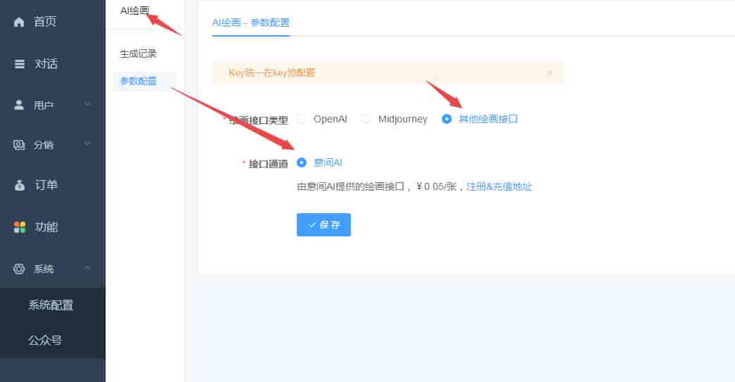 绘画功能采用其他绘画接口 – 意间 AI,本版新增了百度文心一言接口。