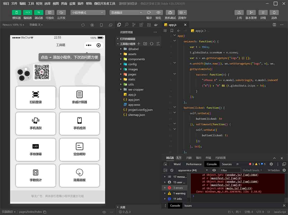 源码说明本套小程序源码,不仅具备美观的界面设计,而且拥有许多实用的功能,更为重要的是,小程序无需服务器和域名,所有功能都无需API接口,无论何时何地,你都可以随时使用这些功能,不用担心功能失效的问题。测试发现,用微信开发者工具打开详情页空白,编译到手机正常。