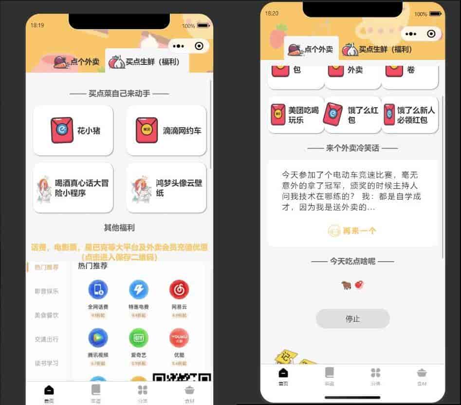 美团优惠券小程序带举牌小人带菜谱+流量主模式,挺多外卖小程序的,但是都没有搭建教程