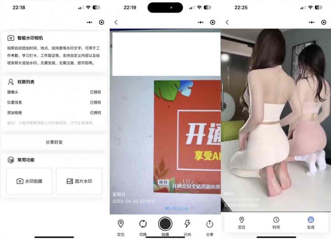 源码说明相信大家在日常生活中或者工作中,都有使用过水印相机来拍照的经历,需要在手机上面多下载一个APP。本款智能水印相机微信小程序,主要作用是在你拍照时,自动添加时间、地点、经纬度等水印文字,可以广泛应用于工作考勤、学习打卡、工作取证等场景,支持自定义内容以及给现有照片添加水印。用户无需安装,无需注册,即开即用。小程序特色功能有,支持时间地点日期添加,支持用户随意切换前后摄像头,支持用户随意开启手机闪关灯,支持用户上传图片来生成,等等。