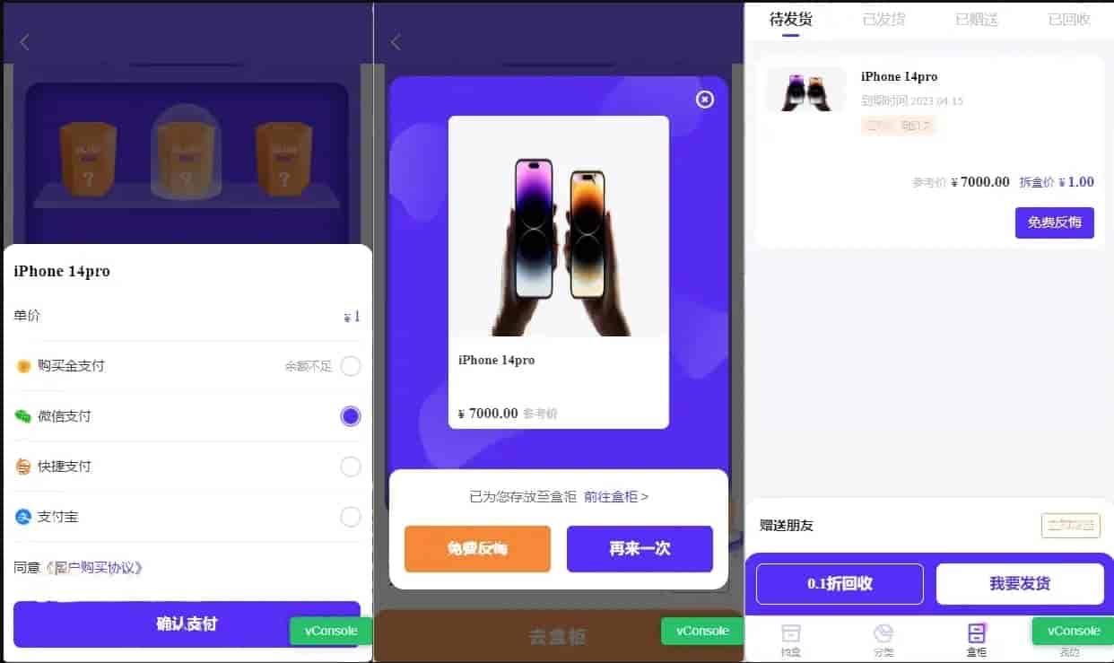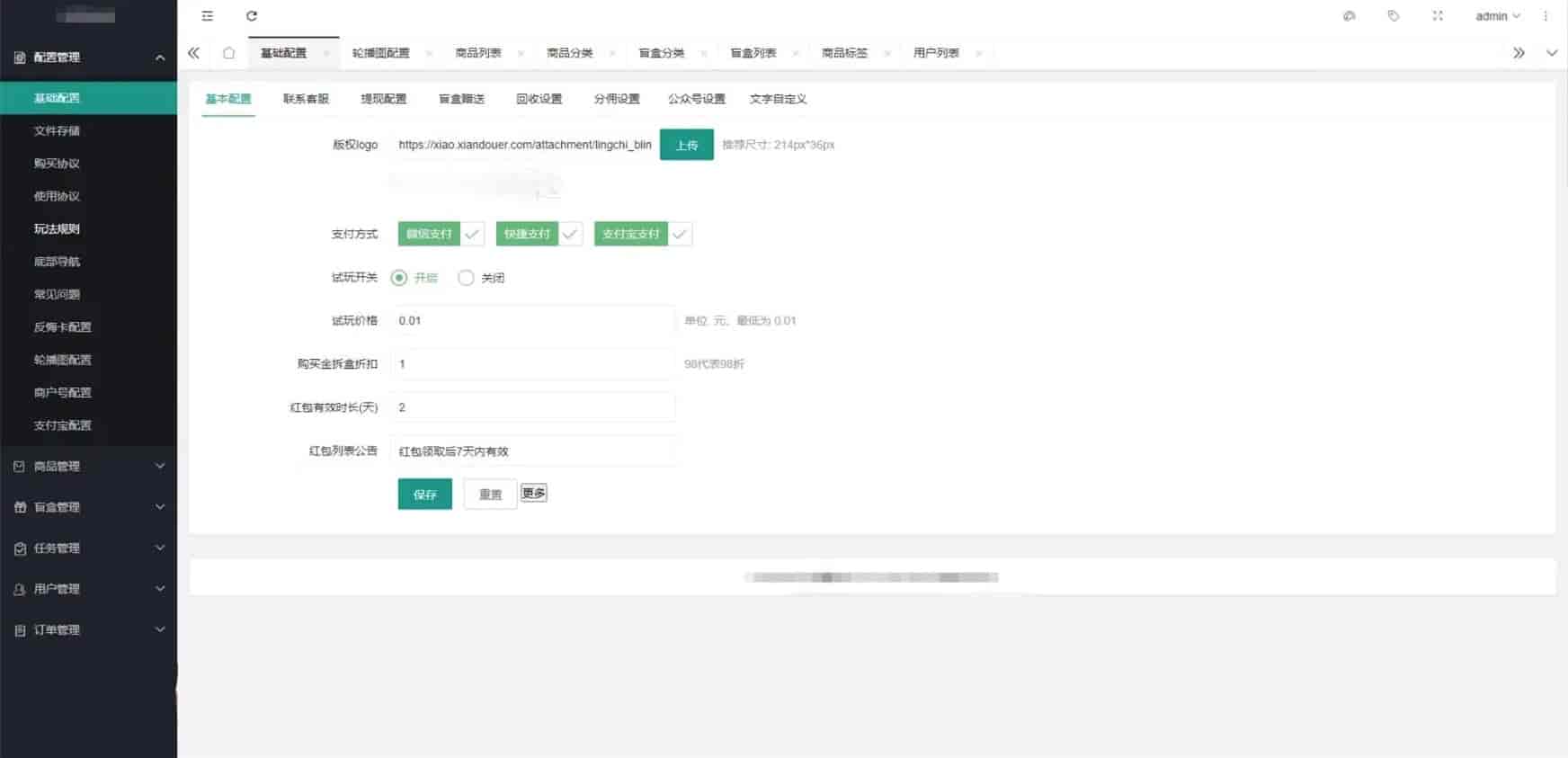 源码说明魔力赏也叫欧气赏、欧皇赏等,是一种以特定概率抽赏的潮玩小程序玩法。魔力赏较早之前为哔哩哔哩会员购里的玩法,产品包括了潮玩,盲盒,手办,毛绒玩偶,电子产品等。魔力赏的赏品有欧皇赏、隐藏赏、稀有款和普通赏等,不同赏品的概率不同(根据赏品稀有程度设置,越稀有的赏品,概率越低),累计全部赏品池总概率为100%。