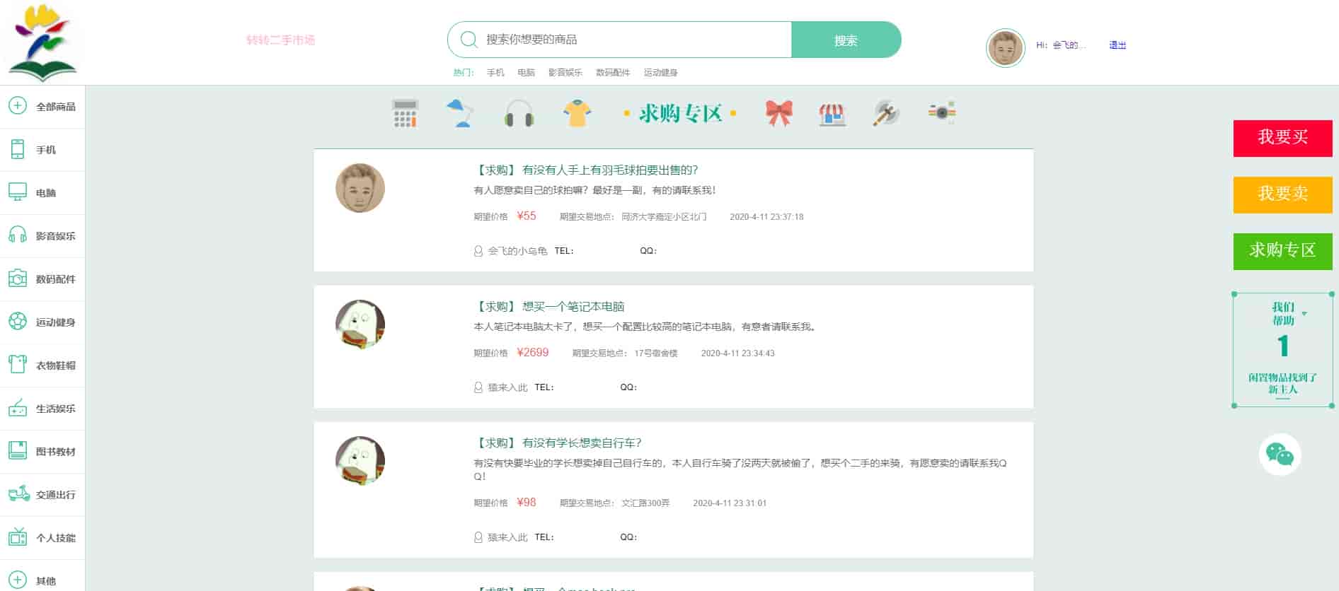 [商城团购] 校园转转二手市场源码/Java二手交易市场整站源码