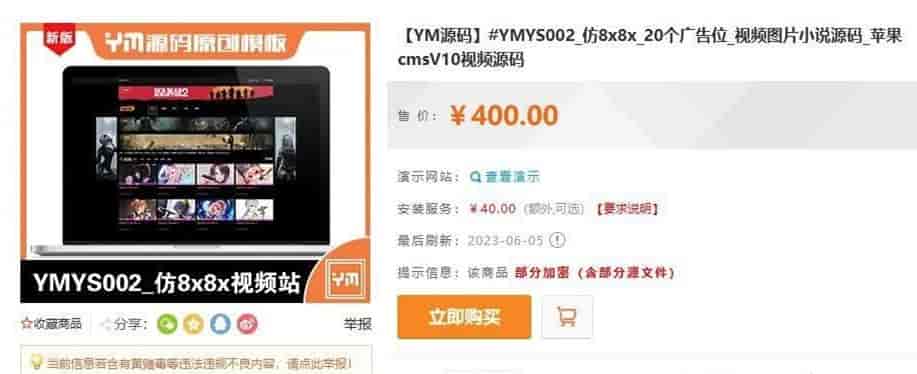 某互价值400元的仿8x8x_20个广告位_视频图片小说源码_苹果cmsV10
