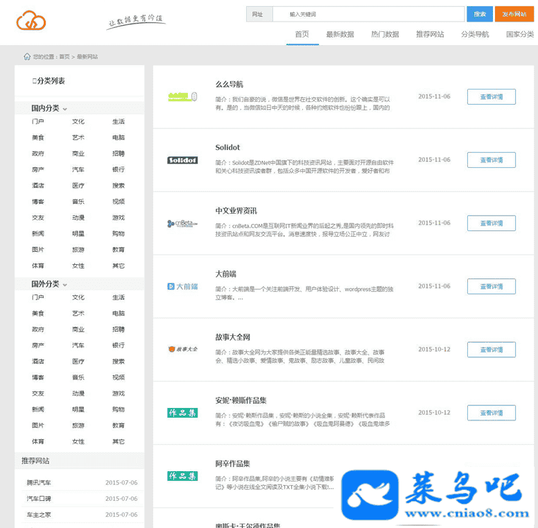 [分类信息] 蓝色大气站长目录导航网站源码 帝国cms内核