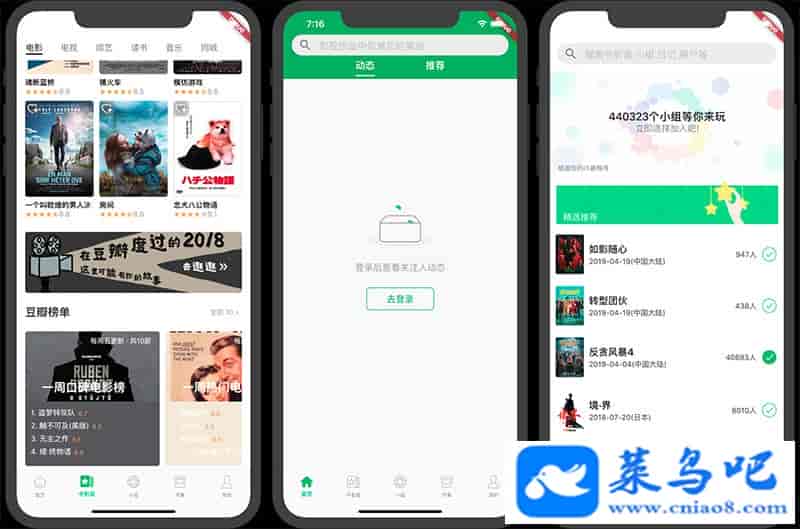 此项目,90%还原豆瓣APP,所有UI均按照豆瓣来实现。