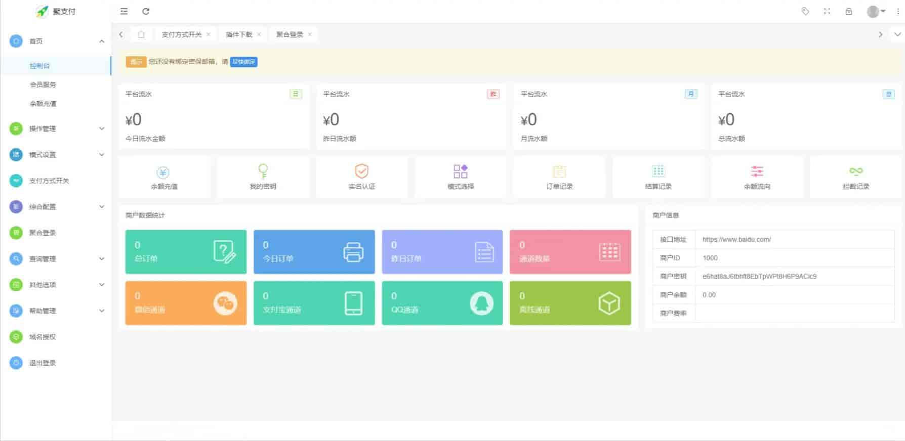 1、模式一:平台模式,使用平台各支付通道完成支付流程,仅限平台自营产品及合作项目使用。