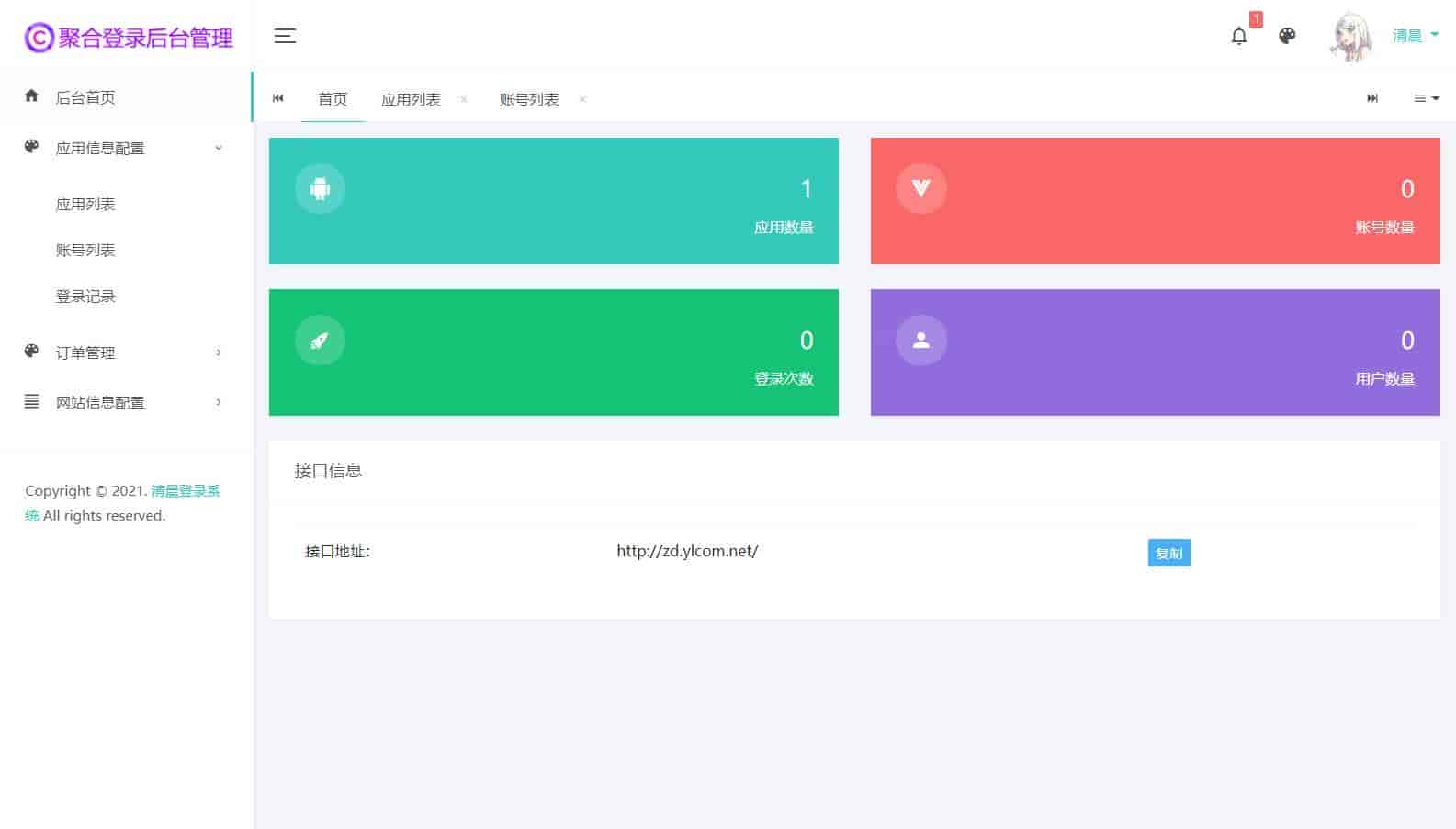 安装好进入后台【后台账号admin,密码123456】以后去对接云端