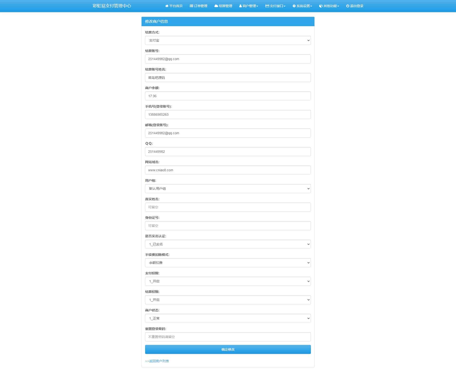 彩虹易支付2021新版v8.1.1支持多通道轮训全开源运营版多模板/免签约支付系统/API退款/实名认证/完善手动提现t0t1