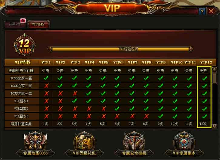 12:更新多人副本99次,1到9层随便刷,BOSS包好东西。更新魔龙窟进入99次,塔防和经验副本进入99次。魔域世界副本进入99次。诸神之战同步官方