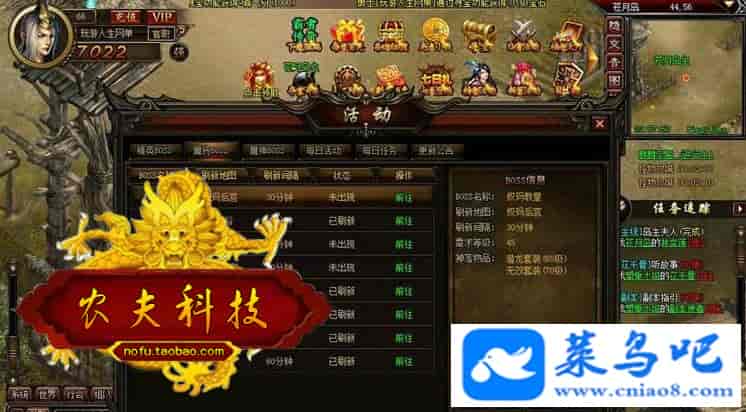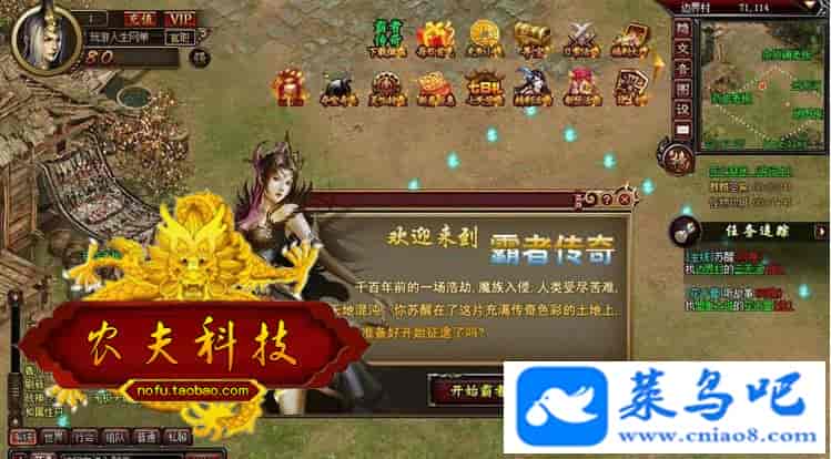 霸者传奇,其实就是利用武尊 替换 UI 的一款游戏。更新了一些玩法。【游戏说明】霸者传奇就是武尊仿花千骨皮肤版本一键端。三职业:战士、道士、法师、游戏进入后无限元宝,金币。经验也有所提升,属于中变。商城特色搞笑服装。充值满级翅膀、守护、坐骑可16阶、轩辕剑神器、官职系统、天命系统、剑灵特色、熔炉、转盘、虚报骑兵等玩法。完美活动、副本BOSS等。数据库修改元宝 金钱 99999999 等级120 VIP等等。。。。配视频演示教程