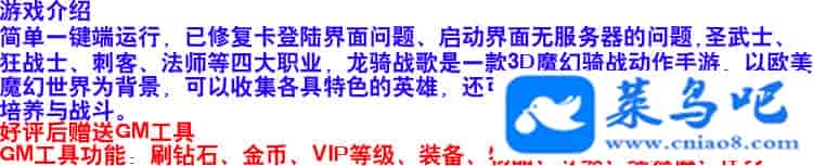 龙骑战歌手机网游一键端修复卡登陆无服务支持手机支持局域网