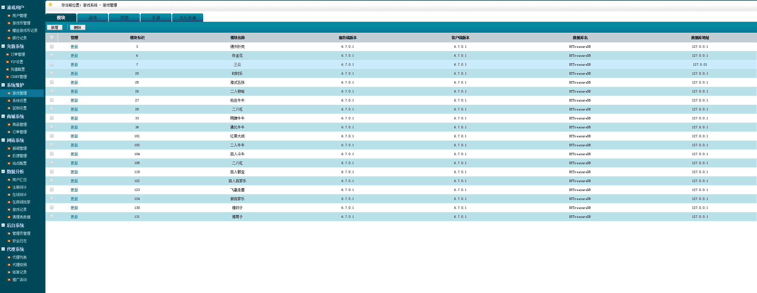 这里修改后找到系统维护 游戏管理 点击大厅资源 在这里修改对应刚才的地址,如果觉得子游戏下载慢可以自行做oss