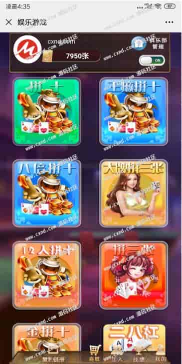 H5大联盟房卡积分双模式游戏源码,游戏带俱乐部带桌子模式,可以上下分,源码包含前端、管理后台、完整数据和搭建教程。