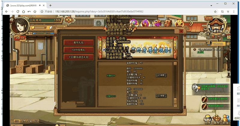 [带安装视频]木叶传说单机版仿火影忍者网页镜像服务端无限金币VIP10