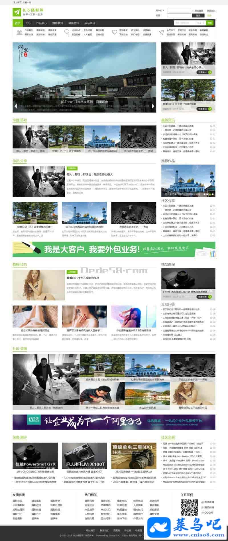 该主题是我们对一个摄影网站实际项目中的一部分我们认为可以被广大站长应用的一些前端模块,整合分离得到该模版。该主题适合应用于摄影、数码、科技等网站,而且论坛首页及列表和内页完全可以独立应用到无门户功能的站点上。主题特点最大特点就是简约简洁,最大亮点在于列表页和内页(含论坛列表页内页)及聚合页设计,除了一个jQuery插件以及少数的几个图标文件外没有引入其他的元素,当然添加了新添加的代码。1、简约简单的风格,其实实在的网站就应该应用此类风格。2、虽然简洁,但全面;注重细节的优化,善于借用默认主题已有元素,减少代码冗余。包含了门户首页、门户文章列表页(三种风格)、门户图文列表页、门户内页、论坛首页(首页含精美的N格哟)、论坛列表页、论坛内页,细节优化。3、图片分屏加载,优化网页加载速度以及节省服务器资源。4、图文列表页和文章内页右侧边栏应用跟随滚动技术,提供用户体验以及页面转化率。5、门户列表及内页顶部导航条固定顶部。6、兼容主流浏览器(IE6以上本版、谷歌、火狐、360等);7、细节优化:很少有模版对二级菜单、宽屏进行优化,我们这款模版对下拉二级菜单优化、论坛部分完全支持宽屏。下载安装说明1、通过DZ应用中心下载并安装这个模板;2、在后台设置该模板为电脑端默认模板;3、如果网站应用了门户频道,在门户频道编辑中选择应用的模板,列表页可以选择木泉网纯图版、木泉网文章列表图文版、木泉网新闻列表三种列表模版,内页选择木泉网门户内页。4、在各种页面类型中导入我们提供的DIY文件(在该页下载DIY文件)。注意:在论坛主题列表页面导入DIY之前,您需要在后台设置开启本版的边栏,设置方法为:后台——论坛——版块管理——编辑——扩展设置——是否启用边栏——开启。文件路径说明1、下载该模板后模板目录为网站根目录/template/muquan_styleone/。2、DIY文件位请在资源下载中下载相应的版本。3、修改门户首页底部写入文件中的信息及添加自己链接的文件路径为网站根目录/template/muquan_styleone/portal/index.htm4、修改二级导航链接及文字文件为网站根目录/template/muquan_styleone/common/dh.htm其他说明1、此作品问DZ前端模板,不会影响DZ内部功能,因此如果是自身网站功能造成此主题应用失败请检查自己的程序问题。2、其中演示站图文列表部分显示了评论数和浏览数,需要修改dz的功能,如需显示,请查看该主题详细说明页面的详细说明(查看修改方法)。