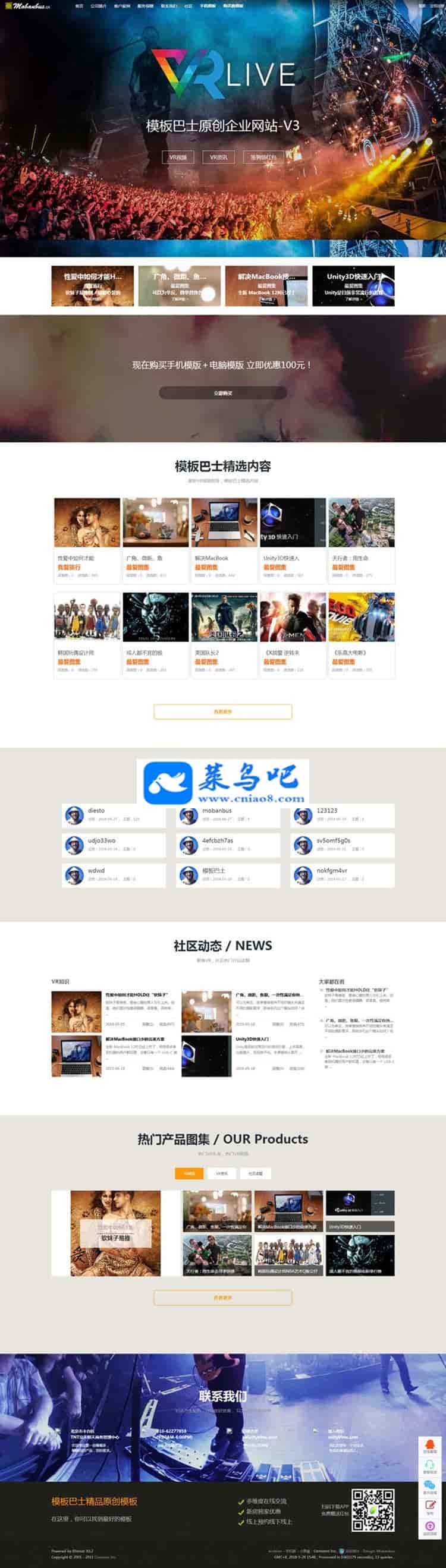 2.模板首页、列表页、内容页、以及文章页面等模板添加了不少处动画效果,增加用户体验和粘度。