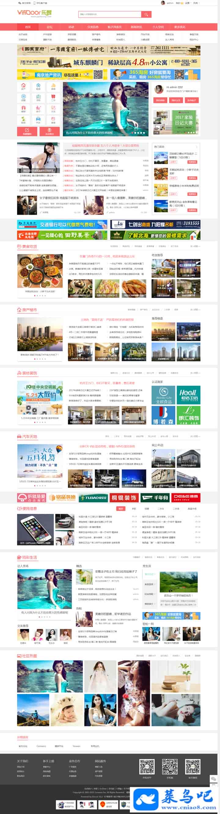 4、为地方门户论坛还配备了15种分类信息扩展,分类信息请看演示站,如此精美,不仅大大提升用户体验,部份行业分类信息还可以直接向发布商家进行收费;因考虑到分享此模板的站点不一定是地方门户,分类信息您可根据自已需求分享,不分享也不会影响模板,省钱才是硬道理!