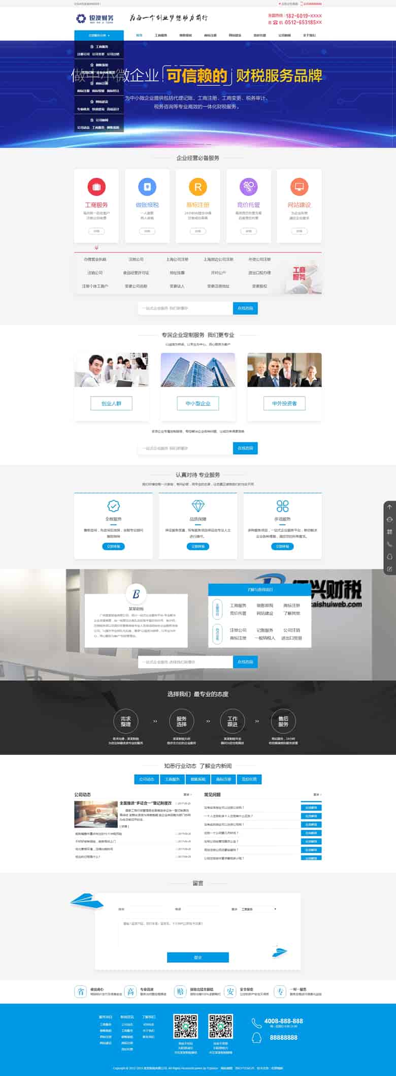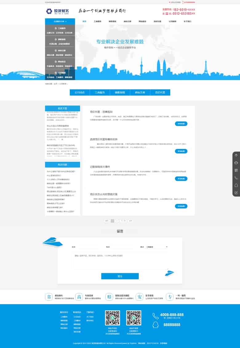 模板名称:(带手机版数据同步)财税记账工商注册认证公司类织梦模板 公司注册财务报账类网站源码下载