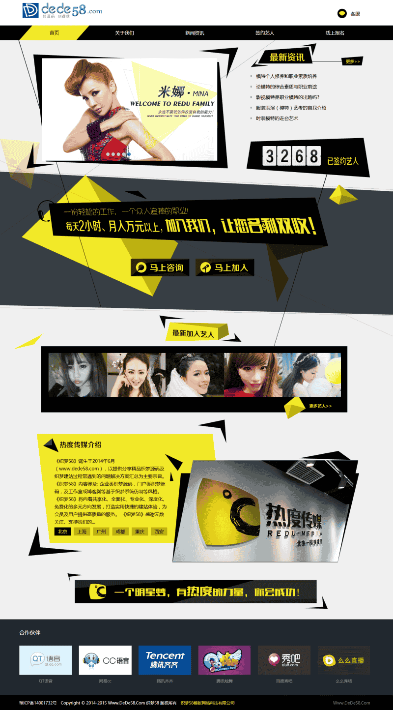 美容美发模特培训艺人明星展示兼职招聘类网站织梦模板,该模板属于模特礼仪、明星艺人培训类网站使用;