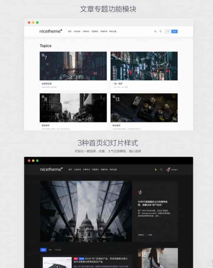 去除主题域名授权限制,前台切换白天黑夜模式,全站ajax功能,功能强大的一款主题。