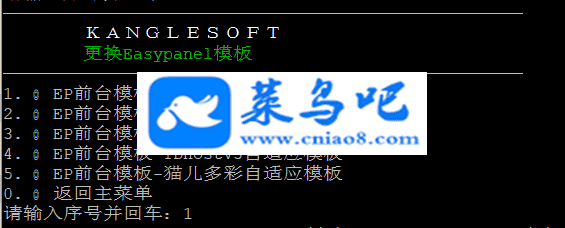 安装方法:进入Kangle一键脚本(http://kangle.odata.cc/),选择“3.更换 Easypanel 模板”,然后输入相应的数字即可一键安装模板。如下图所示