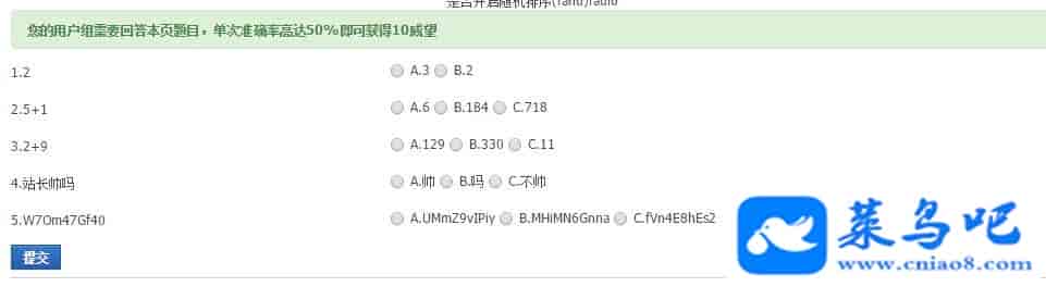后台可设置强制答题用户组、答题用户组、奖励积分、任务完成所需准确率、是否随机