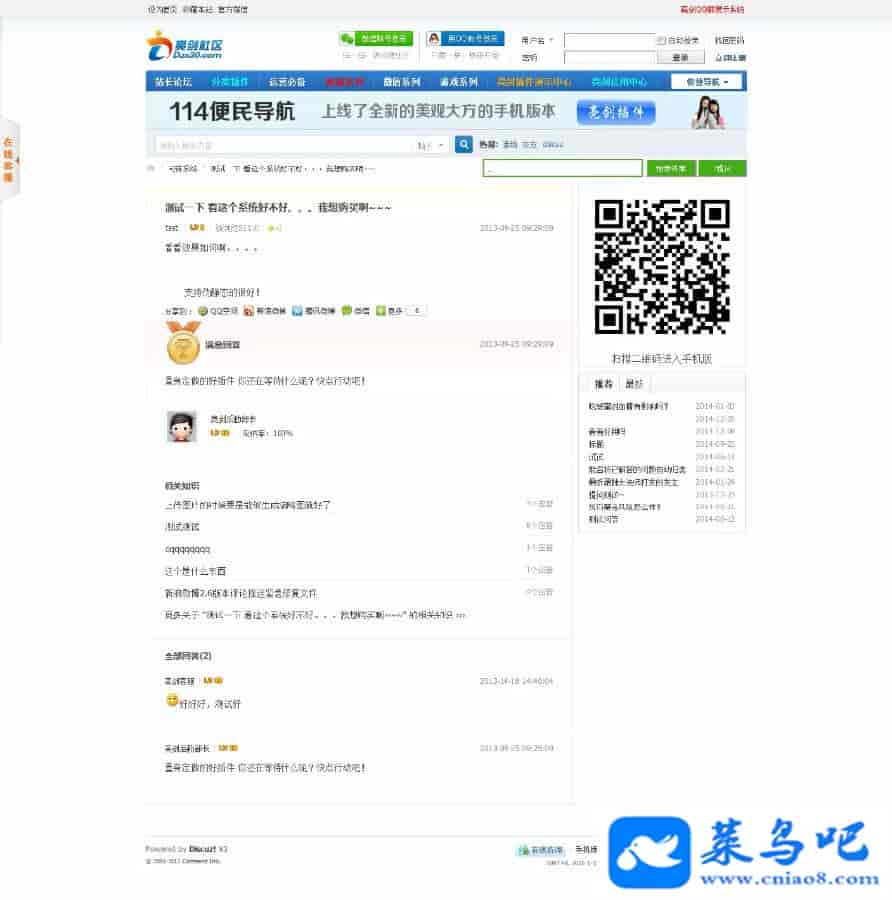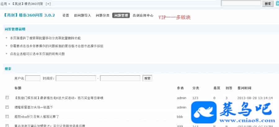 亮剑精仿360问答系统是一套独立的问答系统,提问、回答、采用、搜索等等众多功能都拥有自己独立的界面,同时还可选择同步成论坛贴子,后台插件设置独立开关,可以随心所欲选择问答同步到论坛或者论坛同步到问答,也可以双向同步。旧版问答都享受补差价升级版本哦。