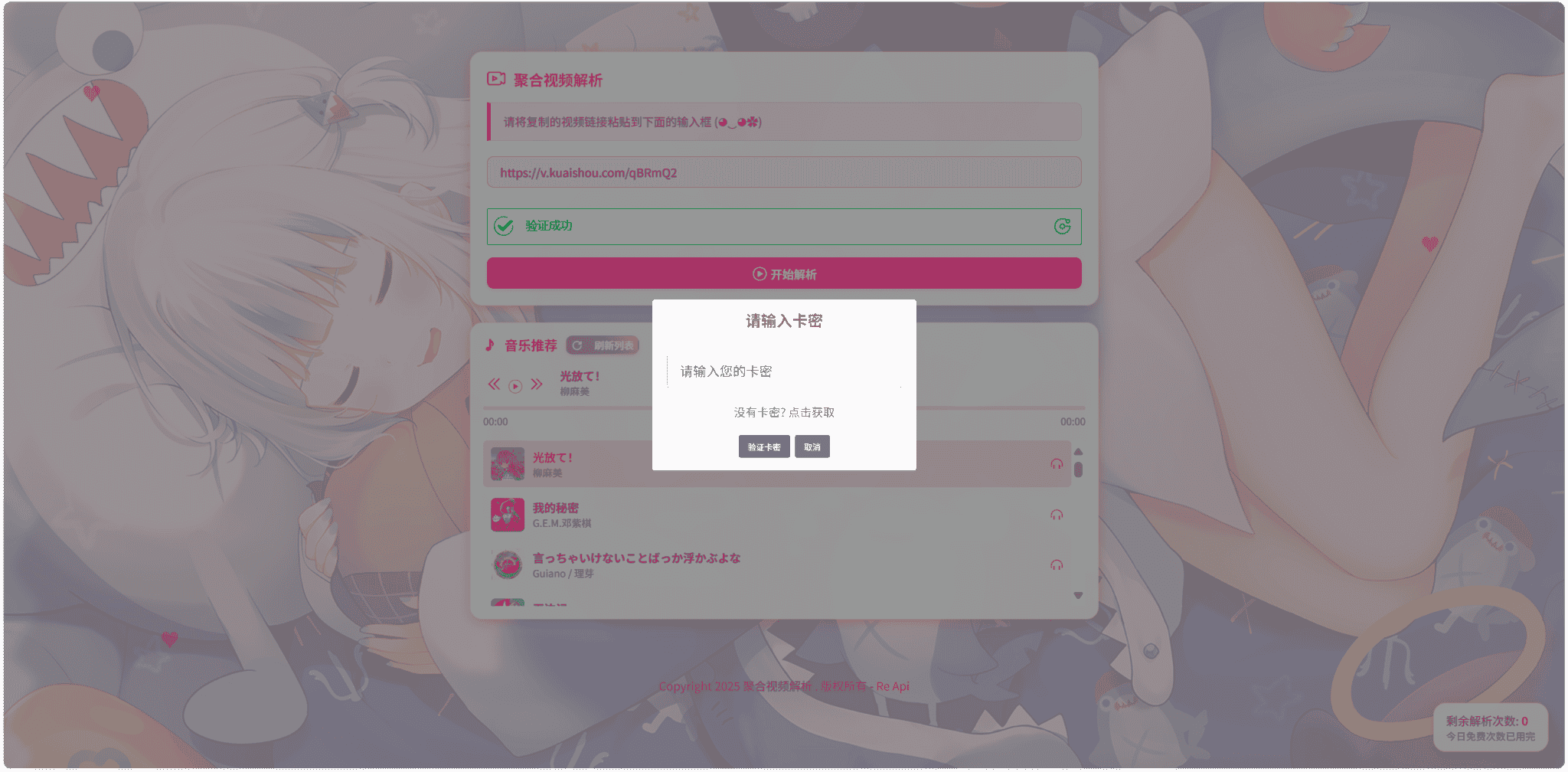 [PHP源码] 二次元短视频解析系统带卡密验证