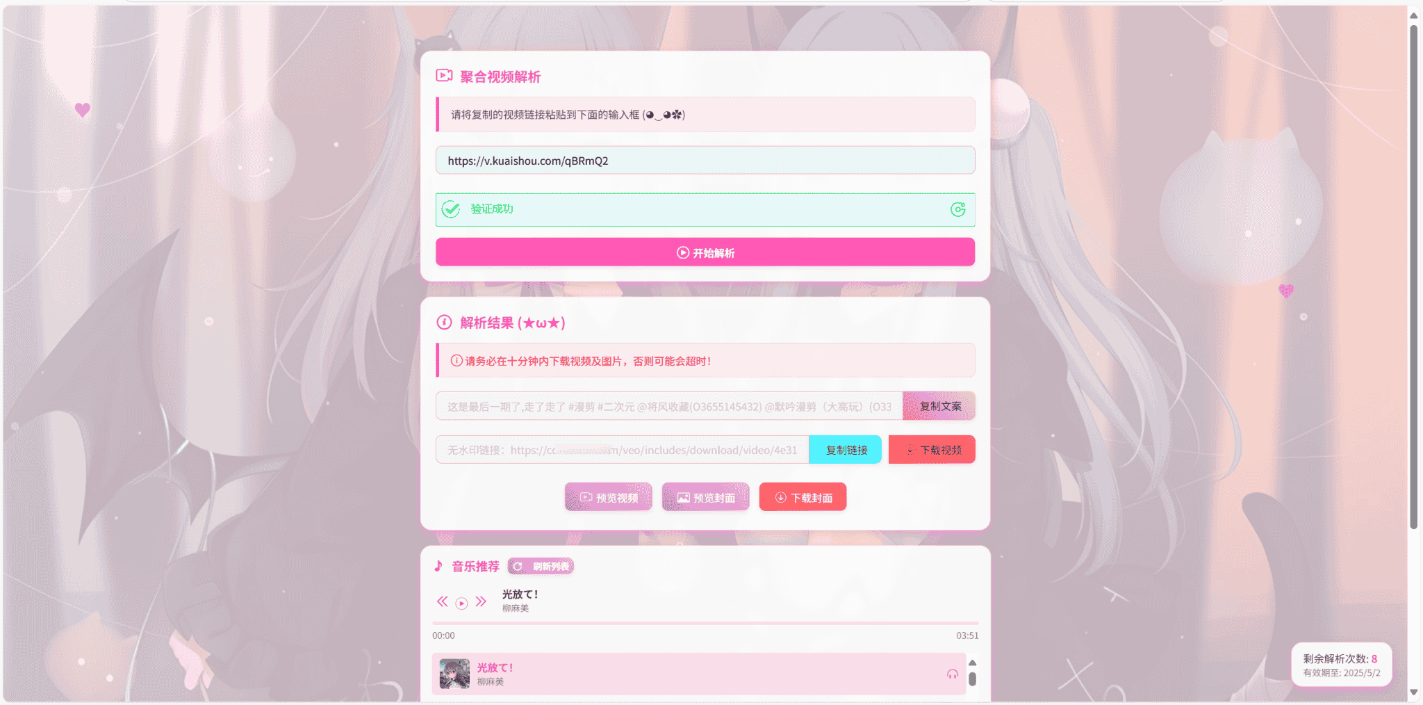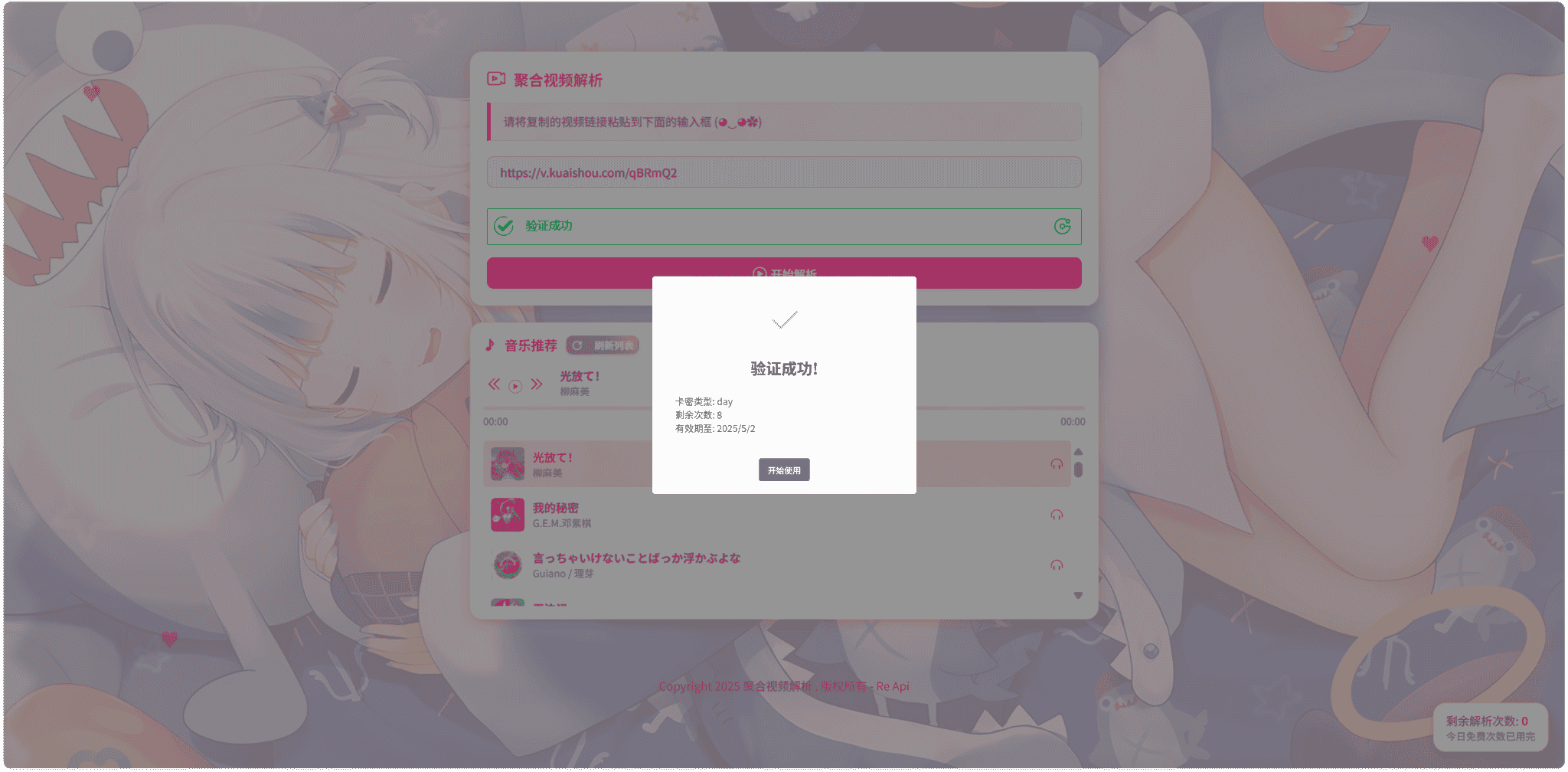 最新二次元短视频解析系统带卡密验证
