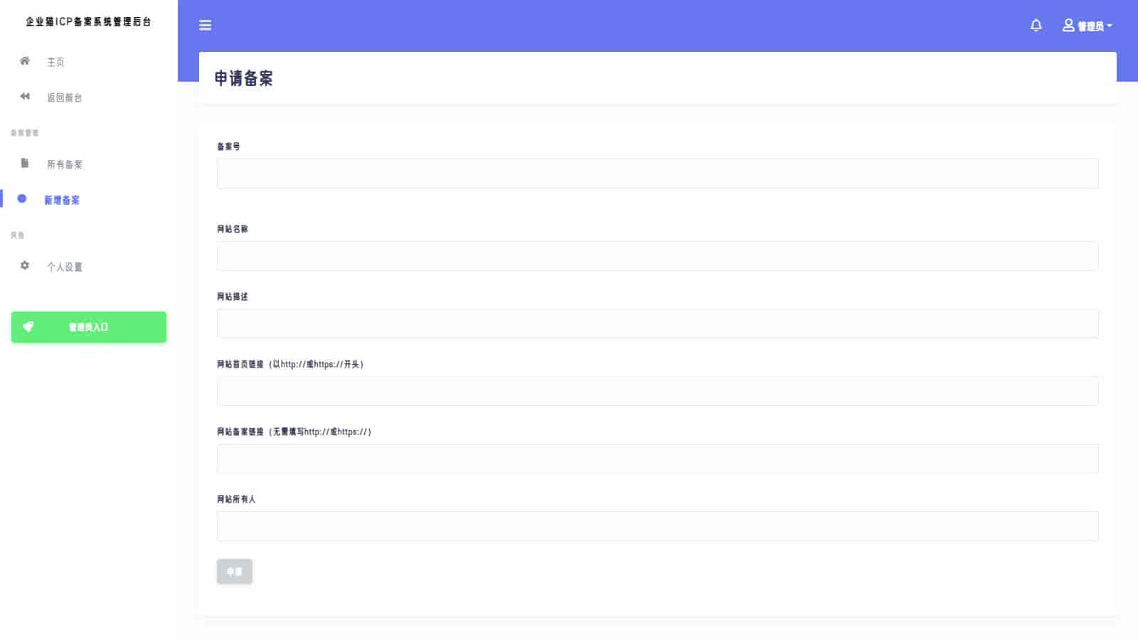 本源码目的是让各位可以自己搭建一个自己的“ICP备案”。仅能用于娱乐性质!