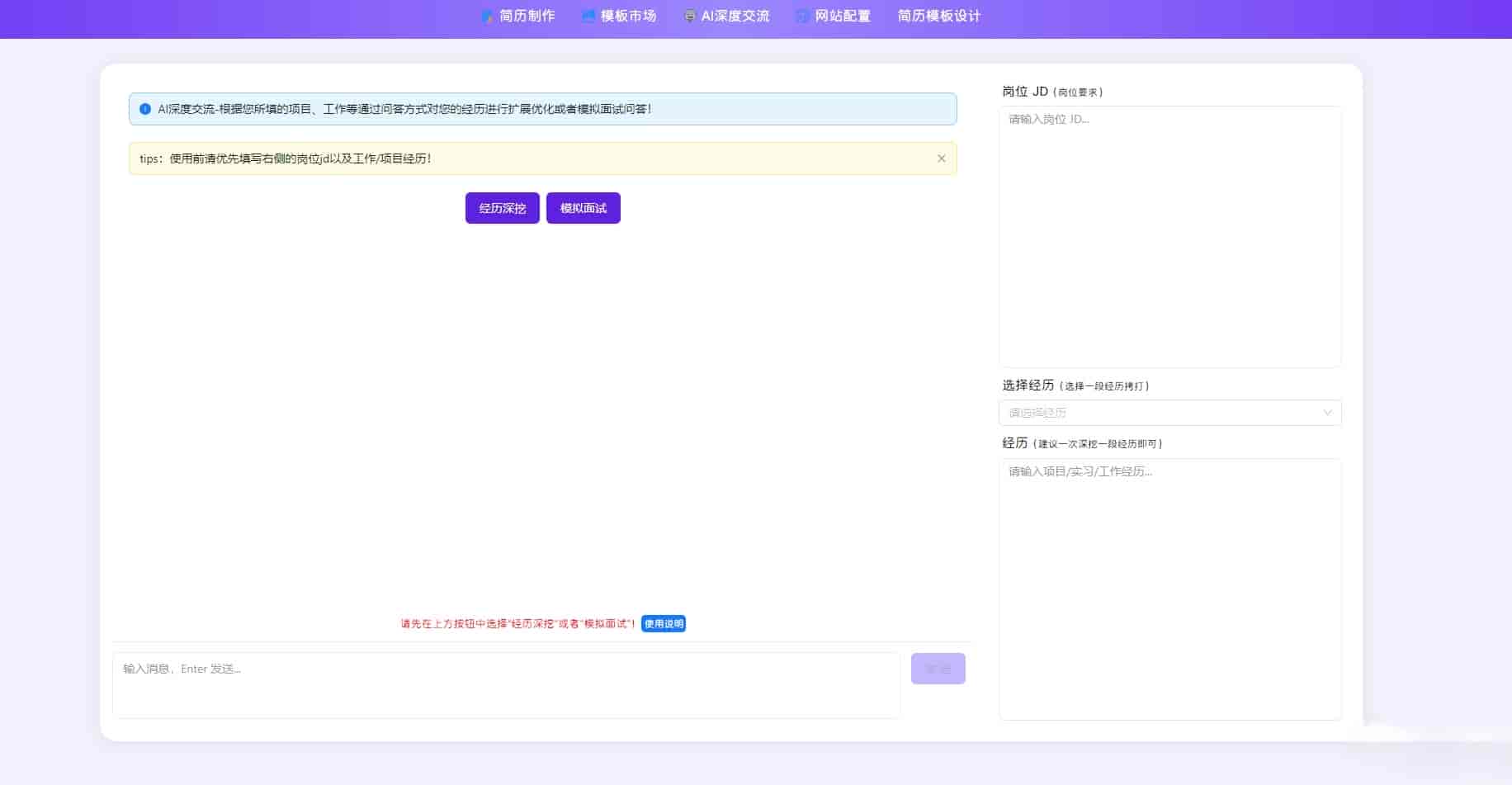 AI简历深挖 利用ai 基于单个项目或者经历的长对话对简历进行深度优化