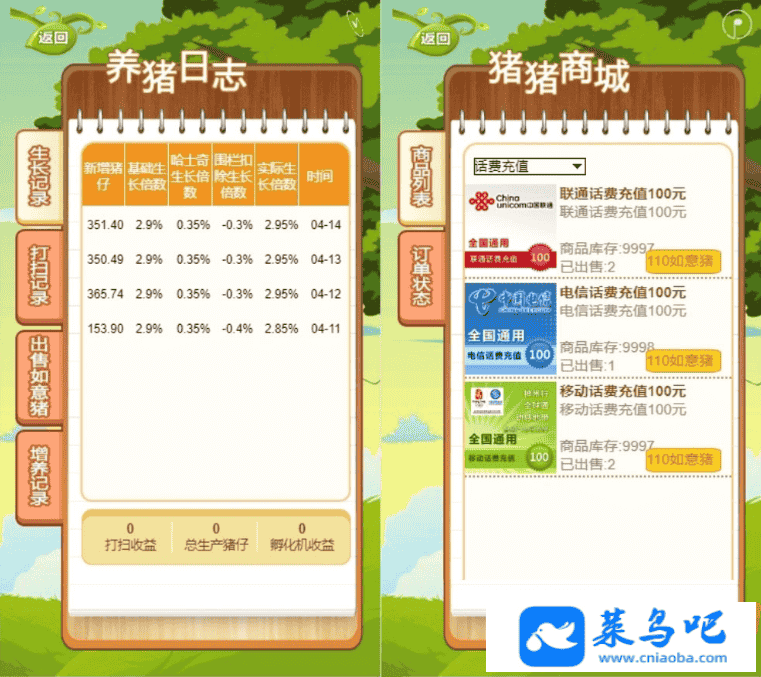 2、玩家还可以在猪猪购物对自己的手机进行在线充值。