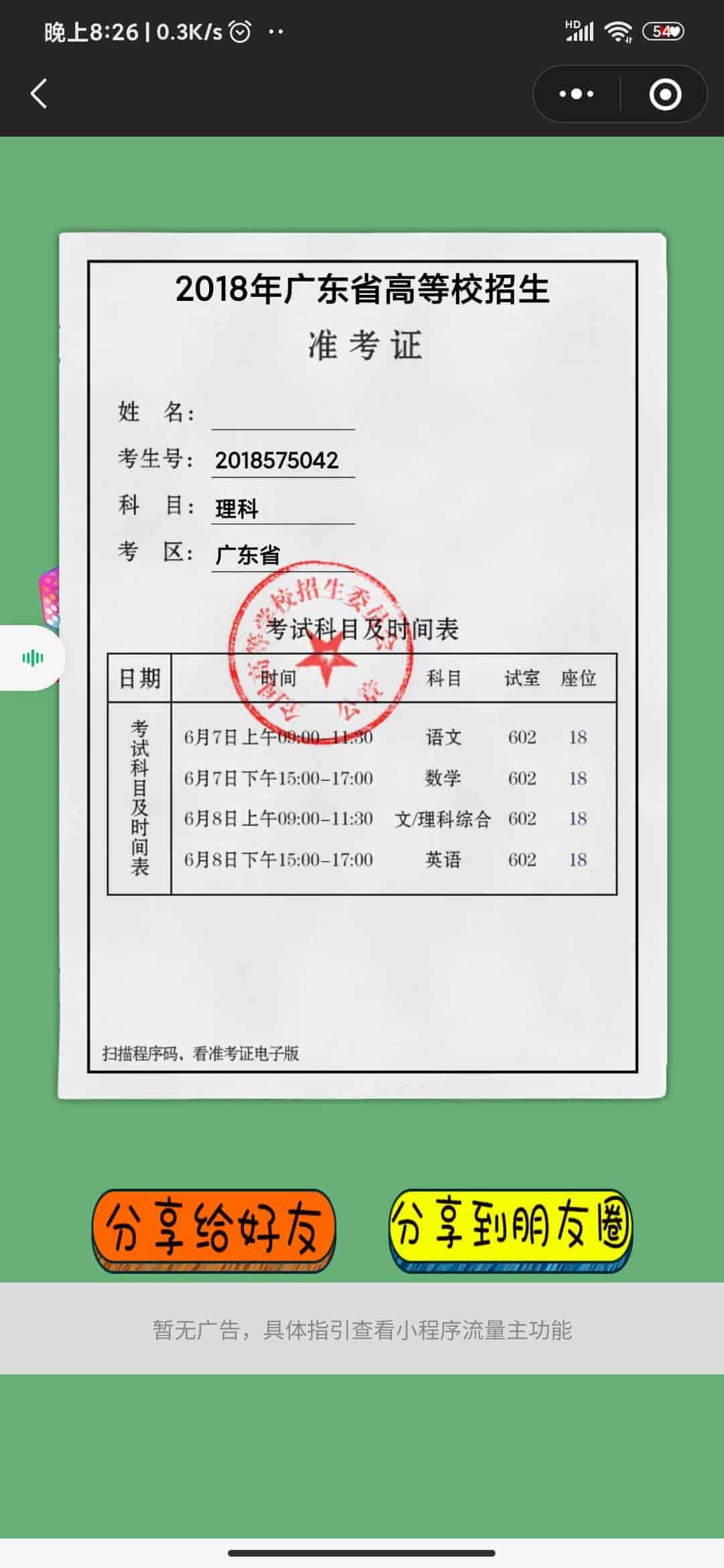 [微信源码] 准考证制作娱乐小程序准考证生成小程序高考准考证在线生成自带流量主源码