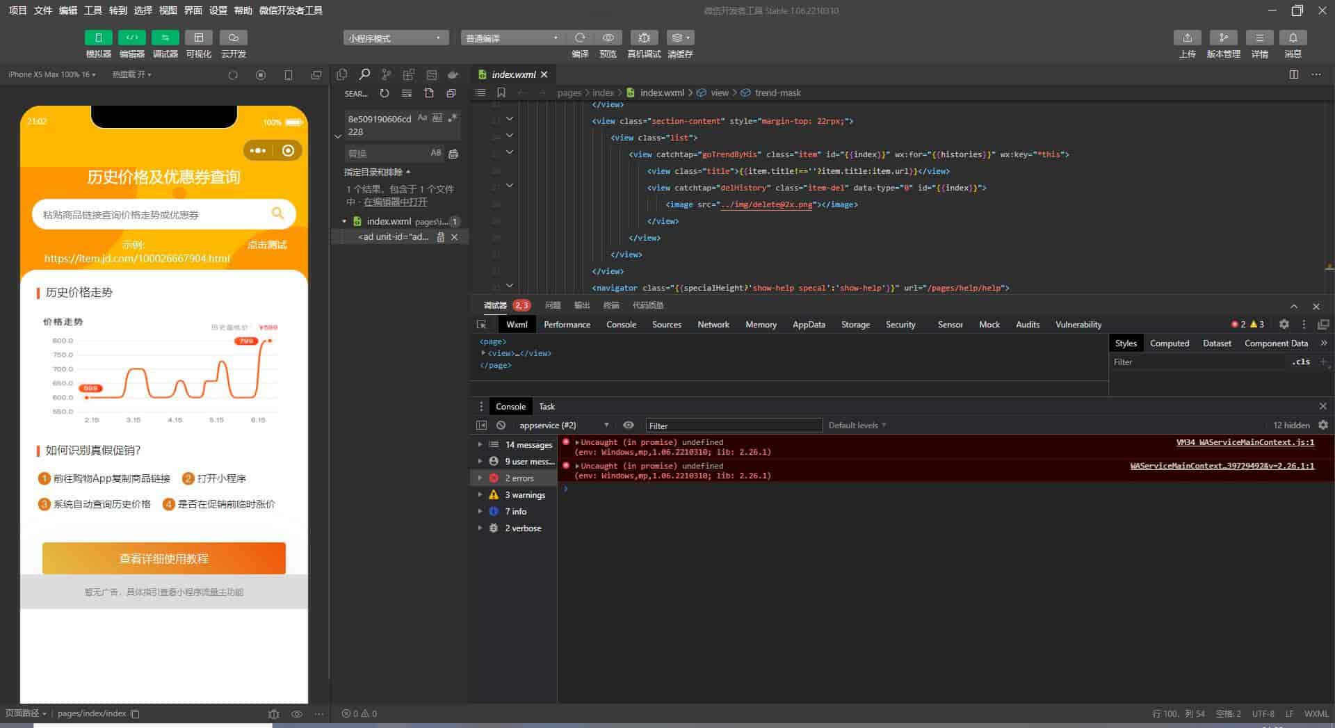 源码描述这是一款商品历史价格查询的小程序,用户输入淘宝、天猫、京东等电商平台的商品链接,可以查询优惠卷和历史价格,这样在618、双十一等各大电商活动的时候,可以了解商品历史价格,下单前做到心中有数,避免买到虚假优惠商品,用户操作非常简单,把想要买的商品链接,复制一下就可以查询了。该小程序自带流量主功能