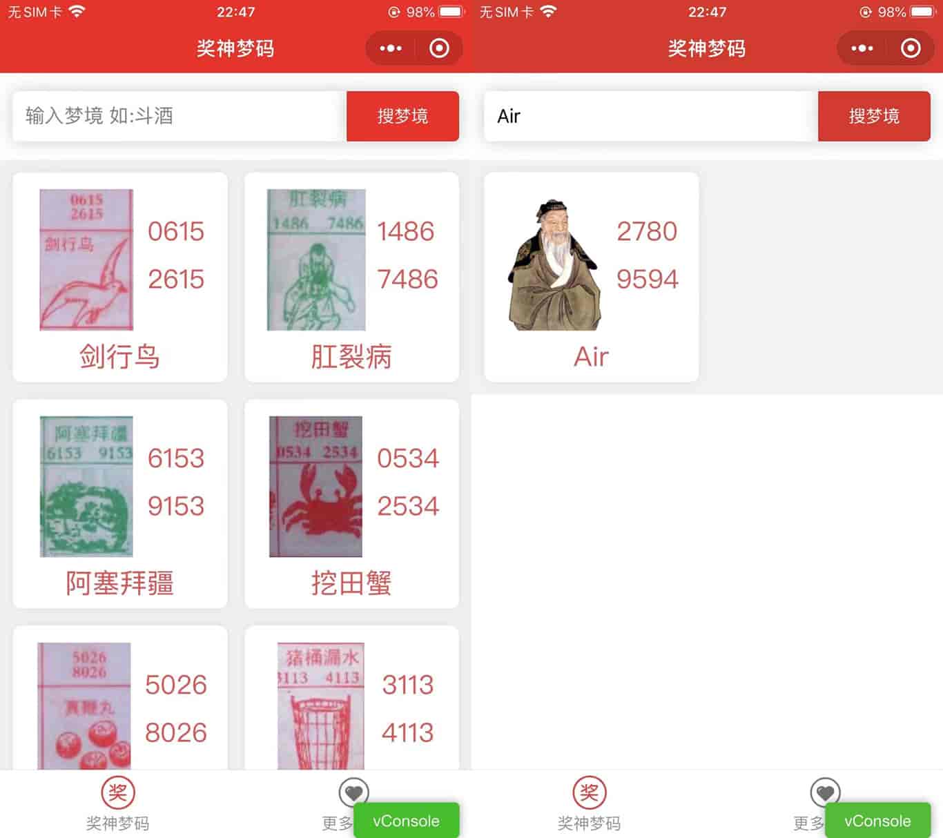这款小程序的内容也就是这样,你通过内容来搜索对应的梦境来获取对应的码数