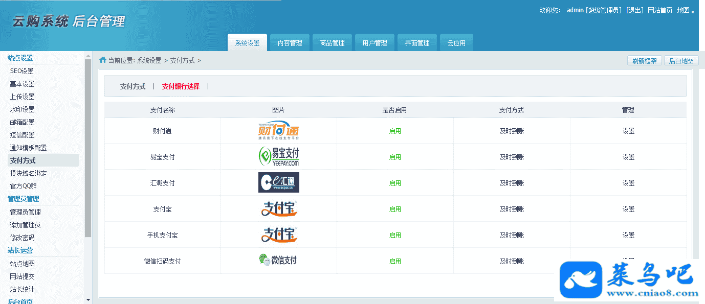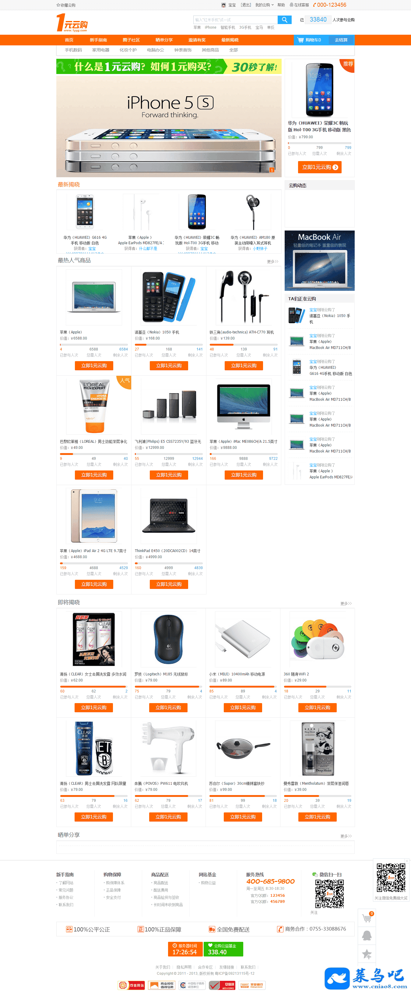 云购系统是一套创新的PHP开源云购源码,精仿1元云购、一元云购前台模板及后台功能,同时还兼顾了各大浏览器的兼容性,拥有多项首创功能,是目前国内唯一一家专业的云购系统授权服务提供商;内置财付通、支付宝、网银在线、易宝支付及手机支付等支付接口,所有网银用户均可无障碍支付。