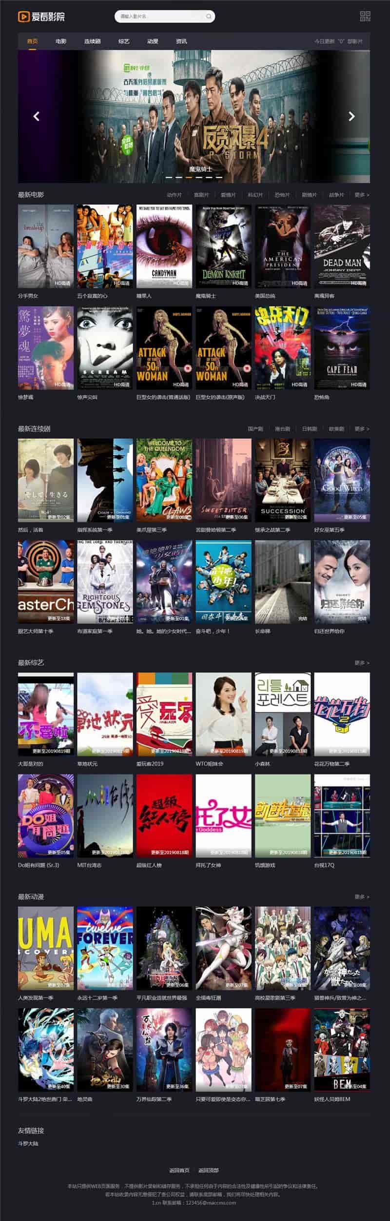 苹果CMS仿《爱看影院》网站模板,基于苹果CMS v10的黑色简约大气自适应主题模板