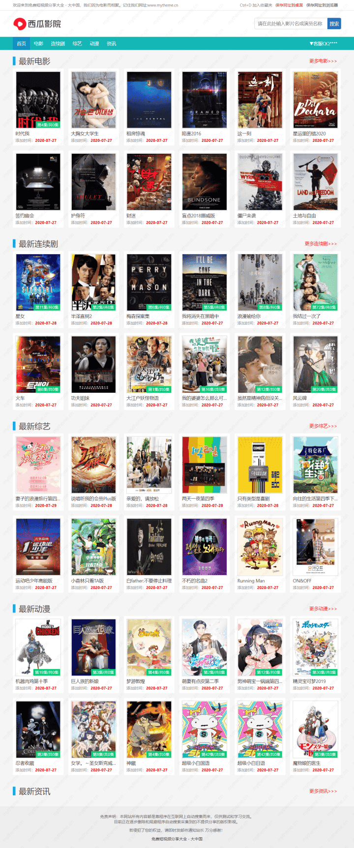 [影音娱乐] 苹果cmsv10仿西瓜影院电脑手机影视自适应模板