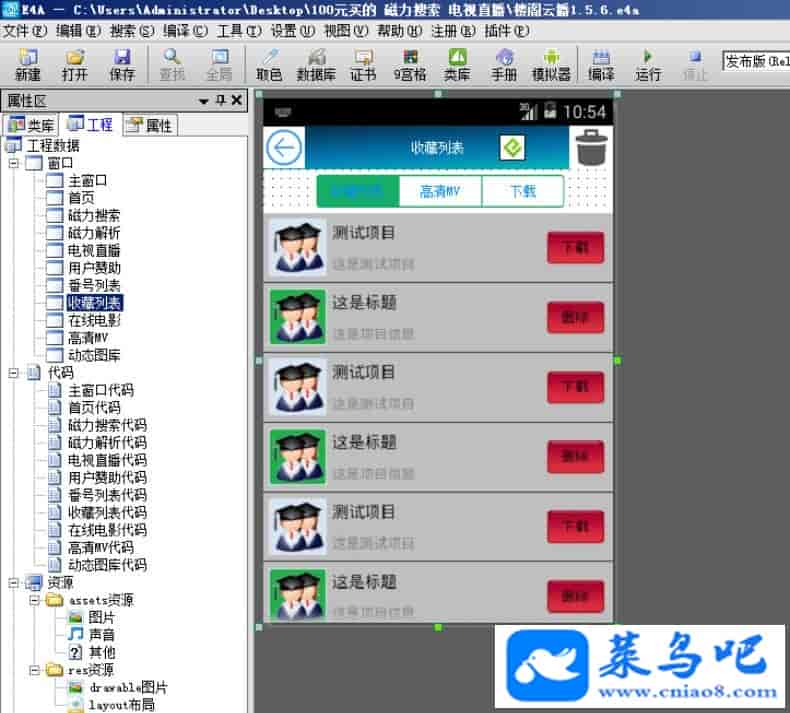 [编程源码] 菜鸟吧源码分享 100元买的 磁力搜索 电视直播 E4A源码 易安卓源码