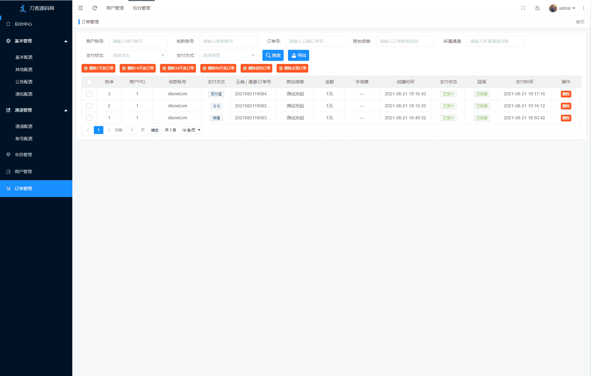 支付通道:支付宝、微信、QQ支付