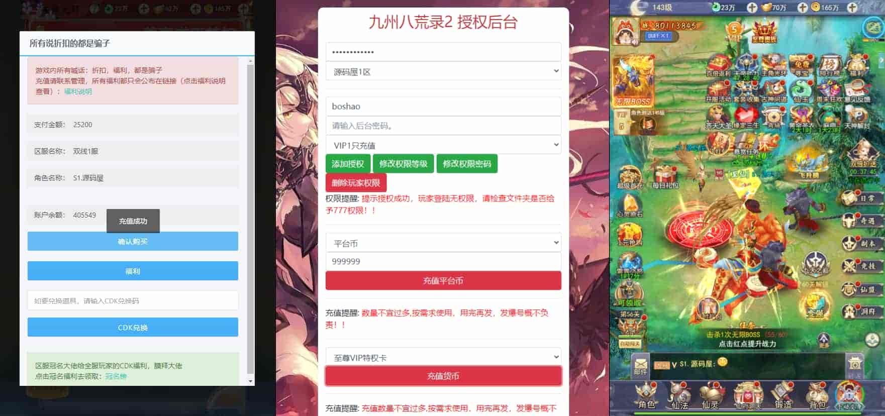 三网H5游戏【九州神魔录仙女管家定制超变代金券内购版】2月最新整理Linux手工服务端+管理后台+GM加币授权后台+简易安卓客户端+详细搭建教程